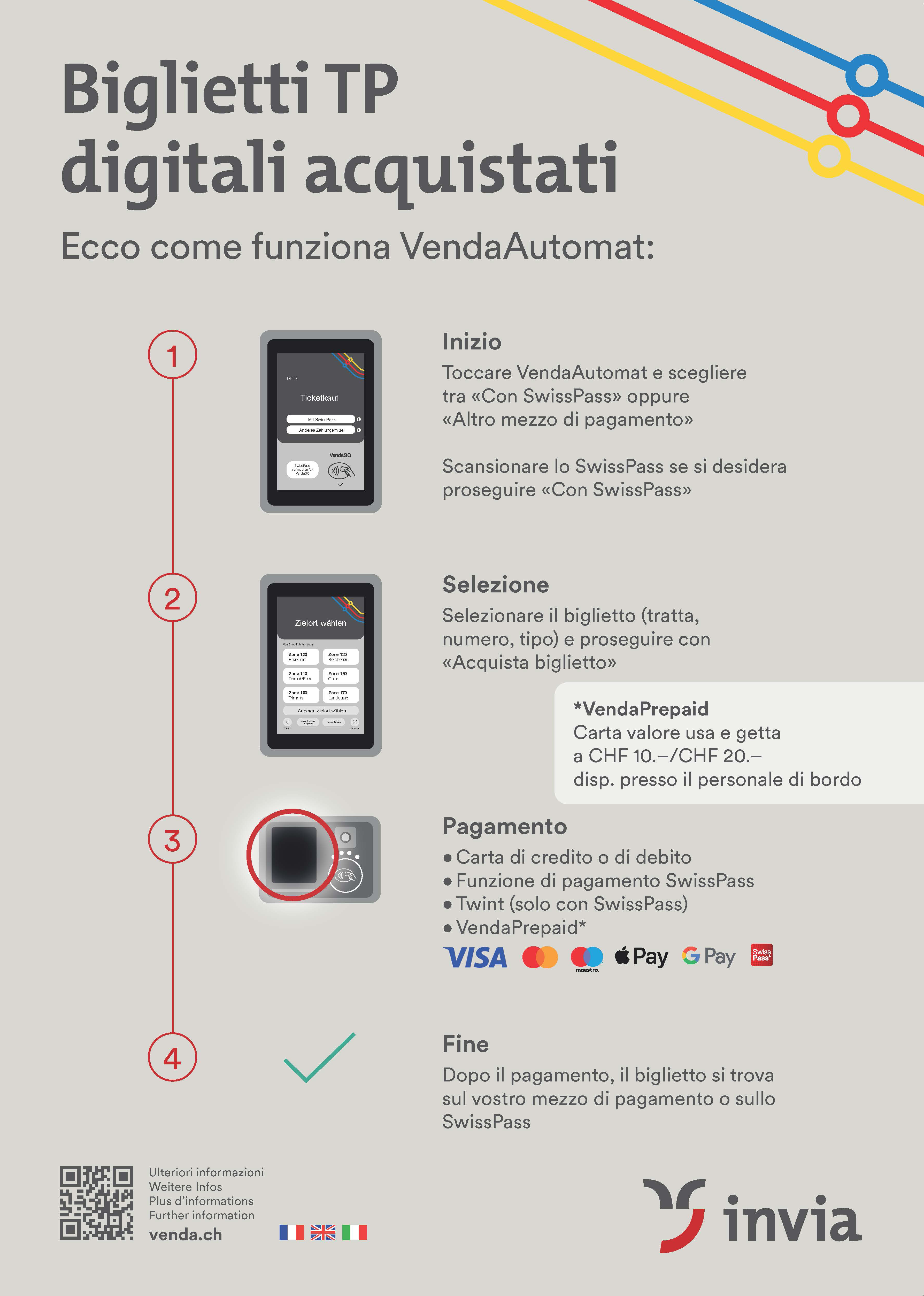 Attenzione: I biglietti acquistati con VendaPrepaid vengono aggiunti alla vostra carta VendaPrepaid. In caso di controllo dei biglietti, è necessario mostrare la carta VendaPrepaid.