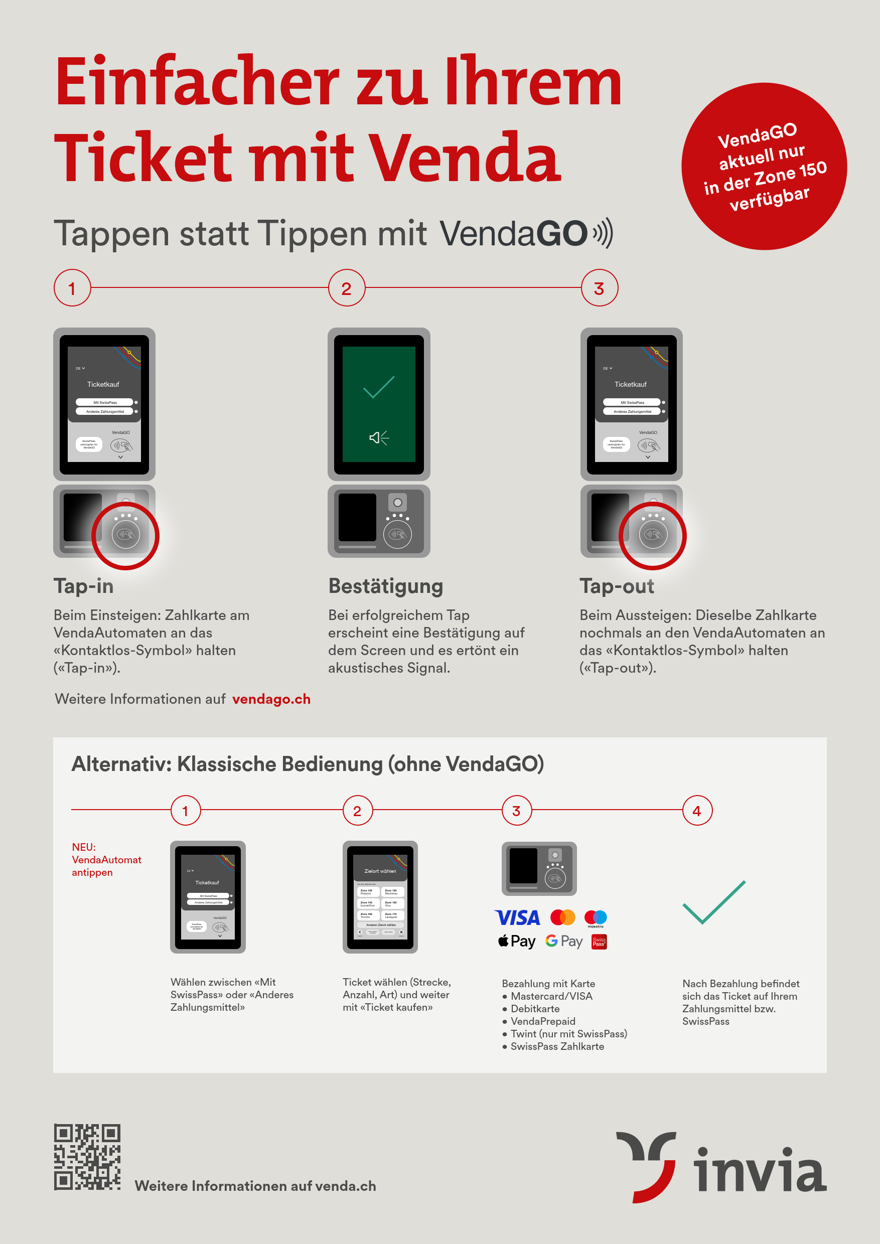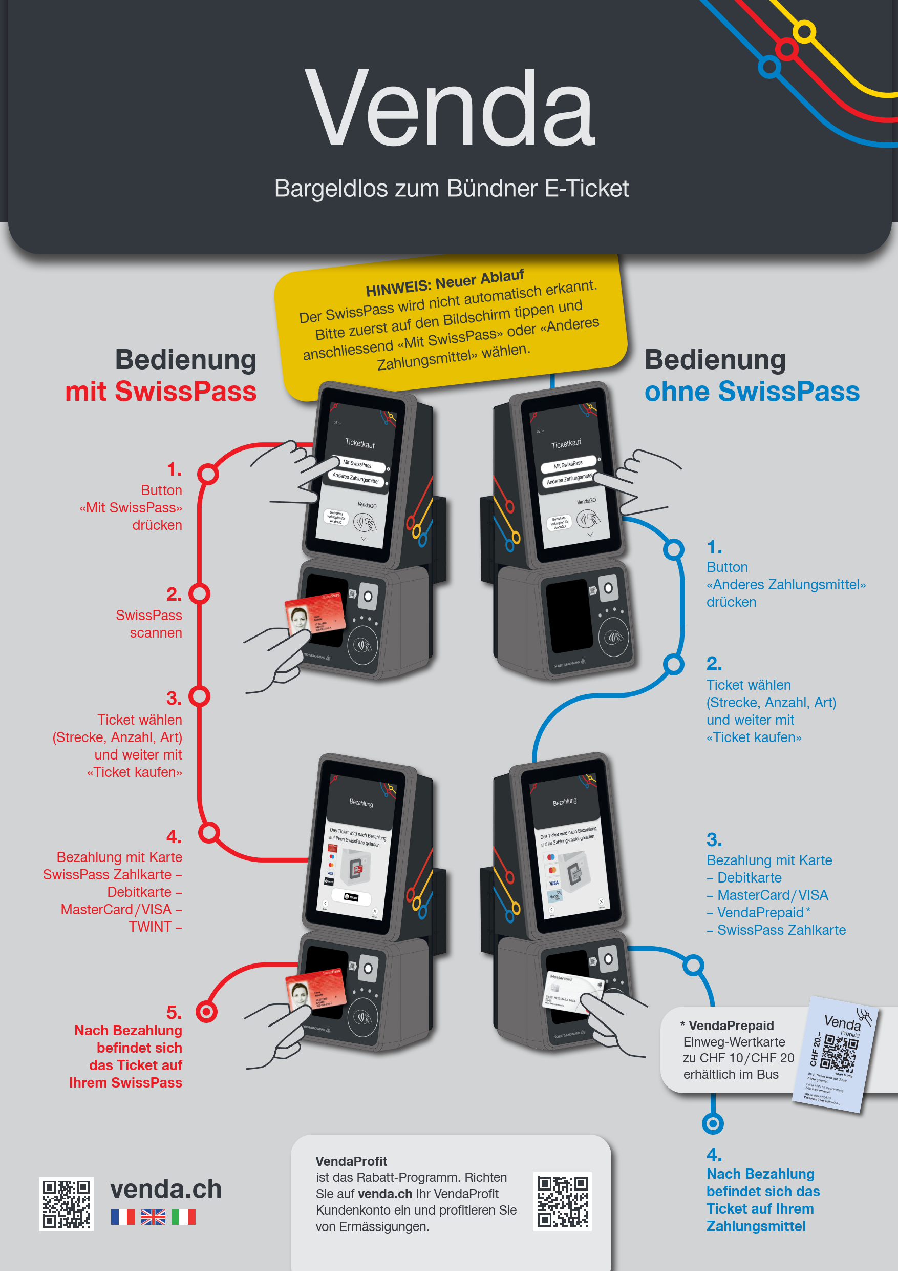 Hinweis: Das mit VendaPrepaid gekaufte Ticket ist auf der VendaPrepaid hinterlegt. Bei einer Billettkontrolle müssen Sie die VendaPrepaid vorweisen.